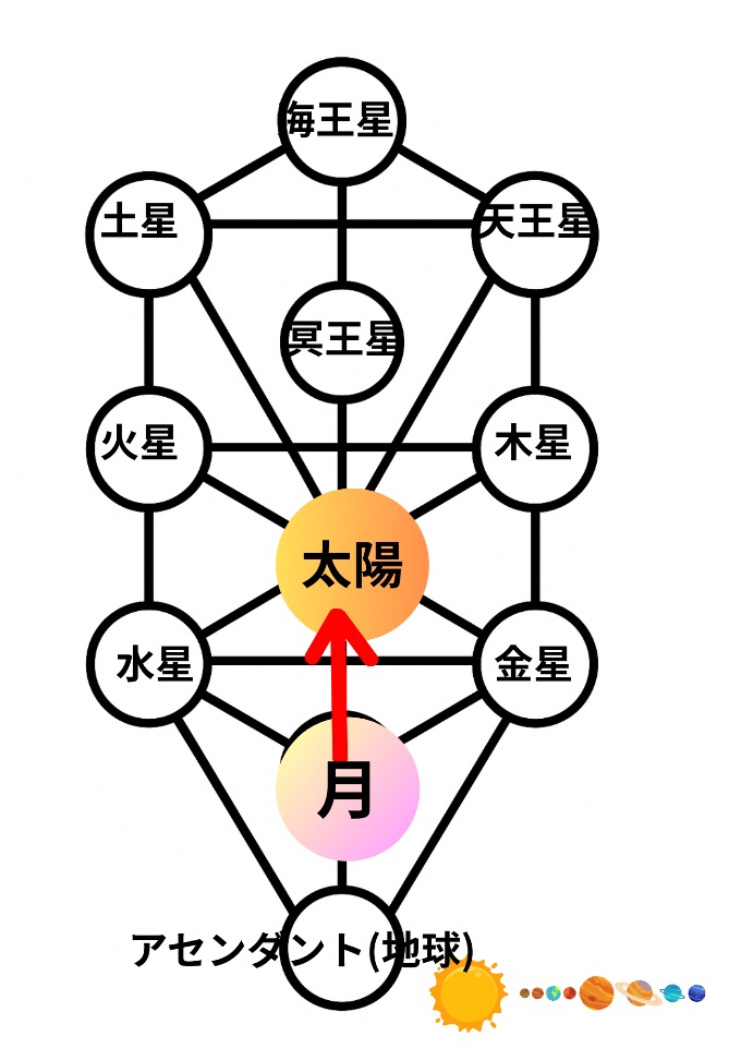 生命の樹ではイエソド→月/ティファレット→太陽と呼ばれるセフィラです。