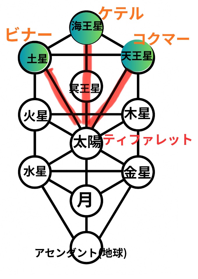 直感と呼ばれるものは主にコクマー(天王星)からやってくることが多いのですが、そこともつながっていますね。
