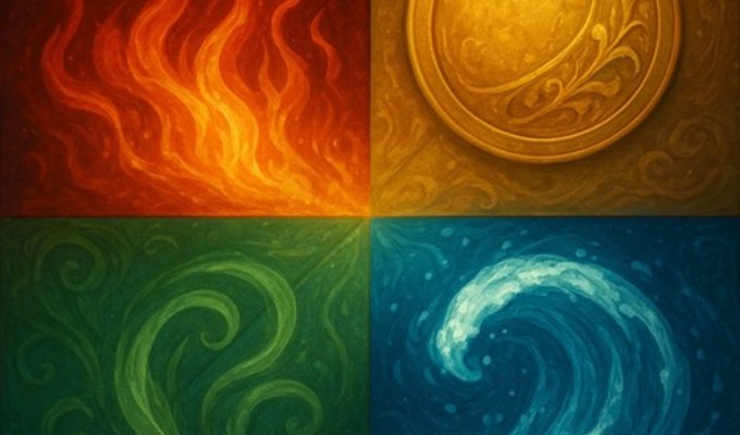 4区分のエレメントはギリシャ哲学における、この世の全ては四元素【火・土(地)・空気(風)・水】から成る、という考え方が元になっています。