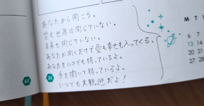 「今月のスピリチュアルメッセージ」を書き入れてみてほしいの。