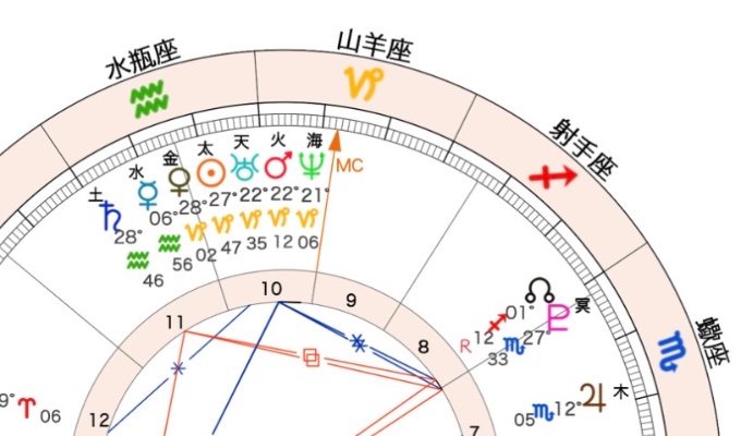 「山羊座」に天体が集まっています。生まれる前に「夢を実現するために粘り強く努力を続けよう」と決意して生まれてきたのかもしれませんね。