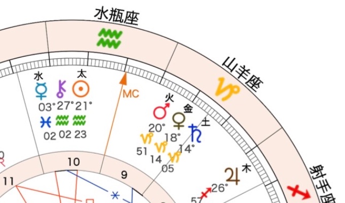 無意識の本音をあらわす「月」は、夜明け前の生まれなら身内を大切にする「蟹座」、それ以降の生まれなら自己表現がテーマの「獅子座」です。今回は「蟹座」と仮定させていただきました。星座の性質を見てみると、積極的にチャレンジしていく「活動宮」、そして意思や闘志を内に秘める「女性星座」が多めですね。