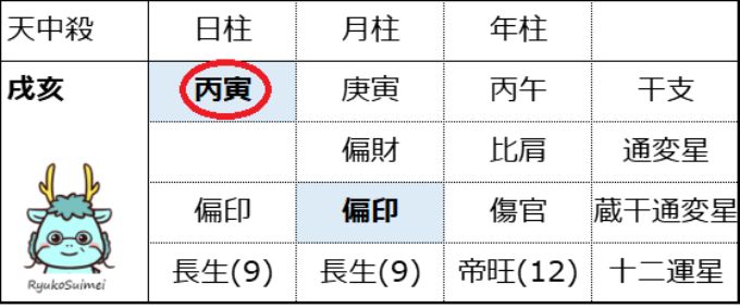 四つの柱で占いますがここでは時間を使わず、三柱で読み解きます。