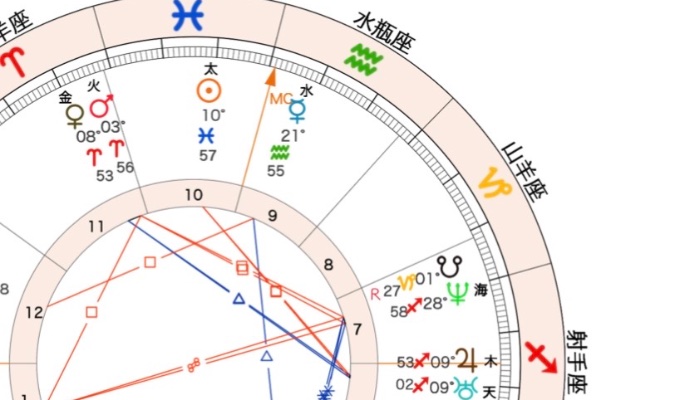 自分自身や人生の目的をあらわす「太陽」は、夢や幻想、芸術的センスに縁のある「魚座」で、無意識の本音をあらわす「月」は、人当たりがよく、洗練されたセンスの良い「天秤座」です。社交的で、その場に合わせて臨機応変に対応できる、好感度の高いイメージがあります。