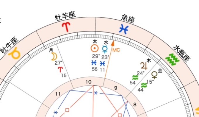 西洋占星術で、1年の始まりは「太陽」が、「魚座」から「牡羊座」に入る時です。年によって3月20日または21日になります。チョー・ヨンピルさんが生まれた日は「太陽」は「魚座」または「牡羊座」で、「月」は「牡羊座」または「牡牛座」の可能性があります。お昼の12時生まれと仮定すると、自分自身や人生の目的をあらわす「太陽」は、夢や幻想、芸術的才能をあらわす「魚座」で、無意識の本音をあらわす「月」は、チャレンジ精神旺盛な「牡羊座」です。「太陽」は、知性やコミュニケーションをあらわす「水星」と重なっています。チョー・ヨンピルさんは、ご自身で曲を作ることもあるそうなんですが、芸術を表現するという才能に恵まれているのは、これらの星が関係しているのかもしれませんね。