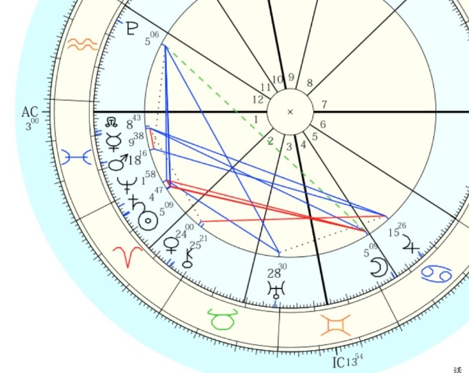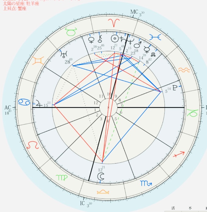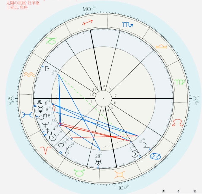 そして上弦の月ではACSは魚座、春分図では射手座です。新月は双子座ASCでしたが、1ハウスに木星がいました。