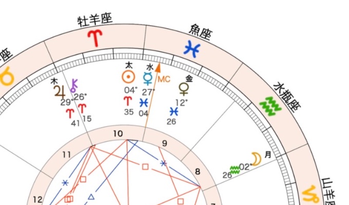 自分自身や人生の目的をあらわす「太陽」は、活動的で素直で嘘のない「牡羊座」に。無意識の本音をあらわす「月」は、視野が広く独創的でフレンドリーな「水瓶座」です。行動力をあらわす「火星」は、情が深く仲間を大切にする「蟹座」にあります。