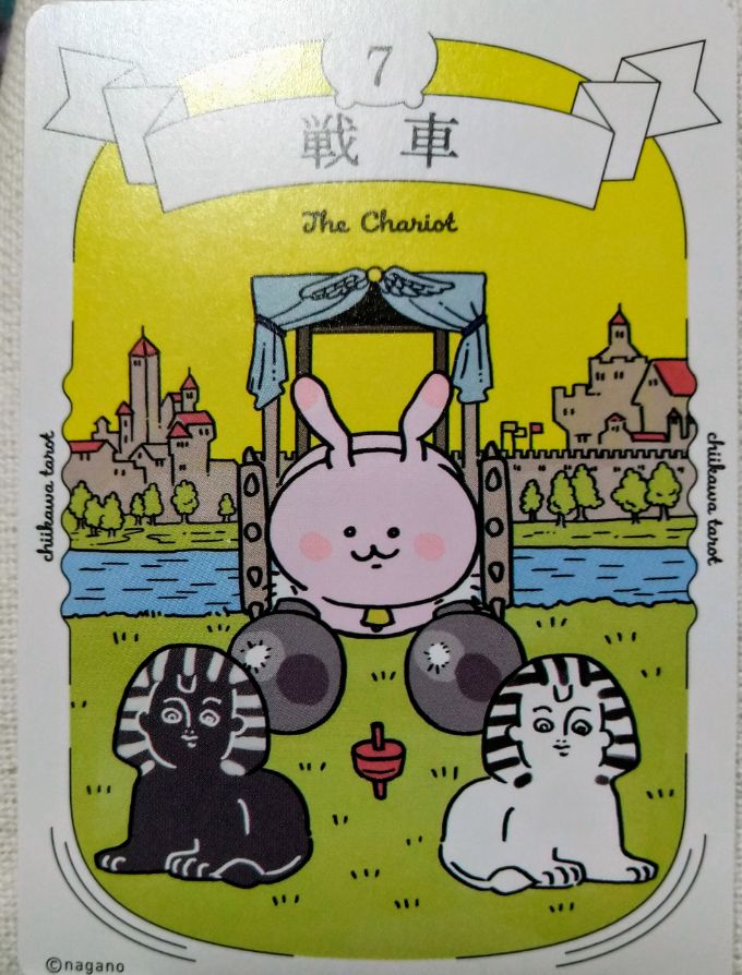 ちいかわタロットではグーチョキパーうさぎとファンの間で呼ばれるキャラが戦車になっています。