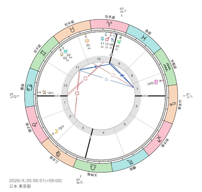 牡牛座の太陽と水瓶座の冥王星によるスクエアそのもの。自分の殻(孤独論理)に閉じこもり、執着していた「僕のセカイ(牡牛座)」を、時代の破壊神・冥王星が容赦なくぶち壊しに来ています。でもそれは、新しい自分に生まれ変わるための「脱皮」なのです。🌀 「仕方ない」からの脱却と覚醒