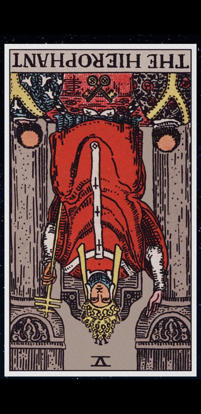 正位置では教えを説く者と信じ仰ぐ者の絆で強固な組織を作るカード。逆位置ではそんな信頼関係を壊す不誠実さが現れてきます。
